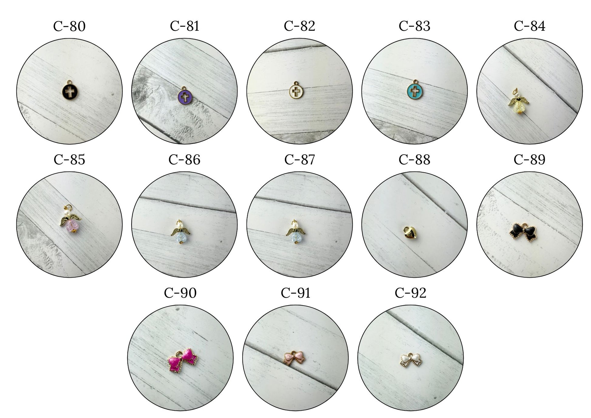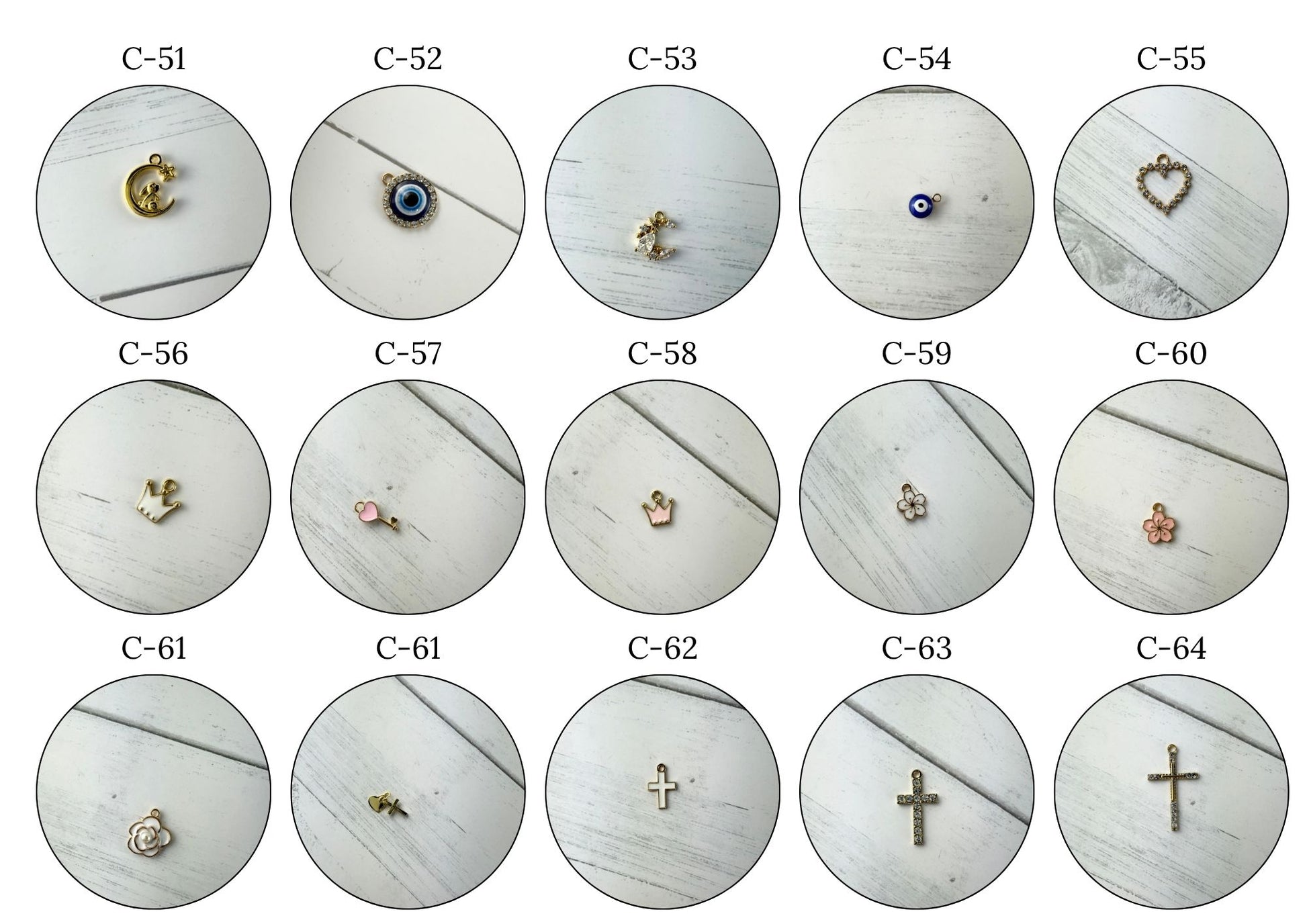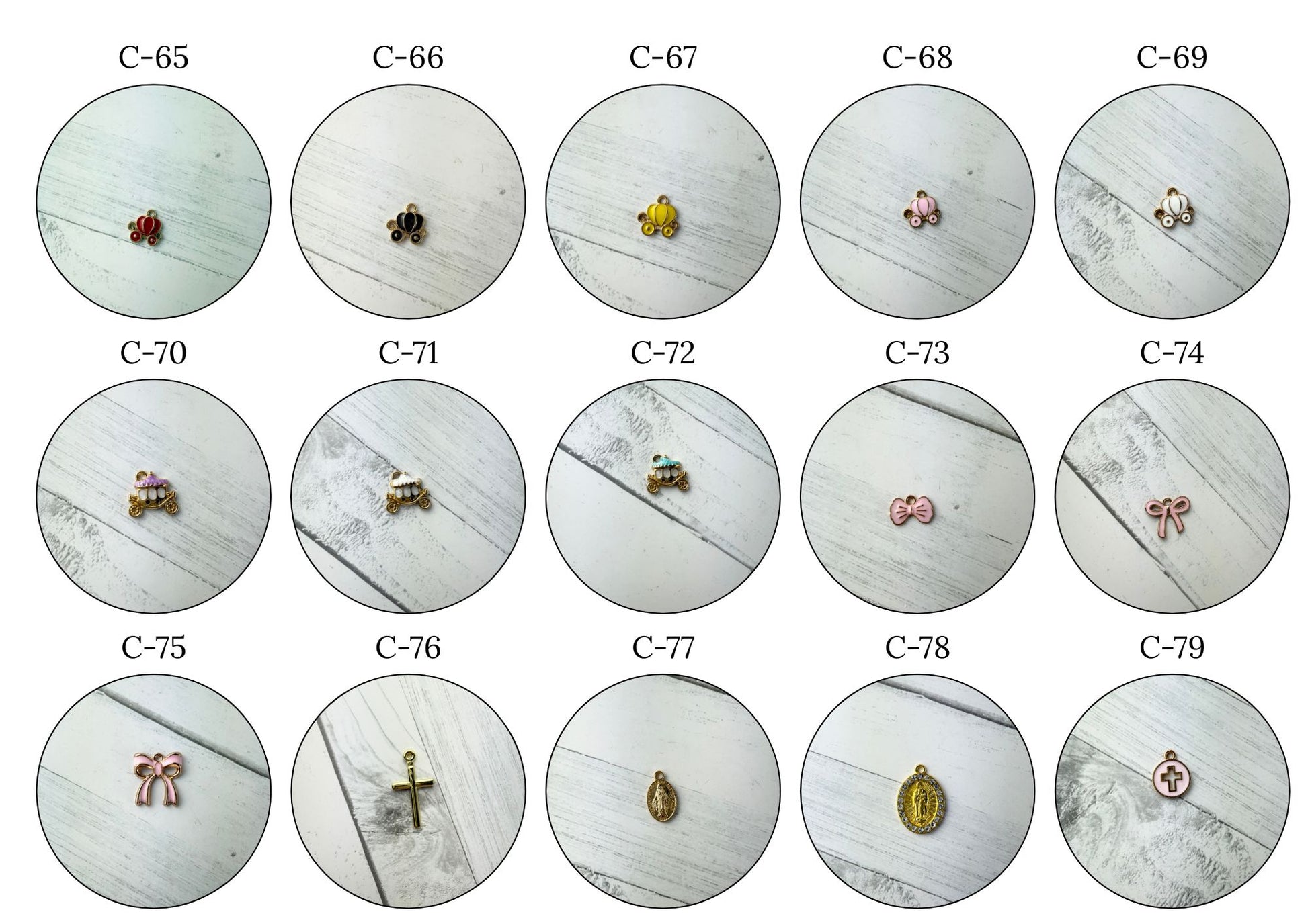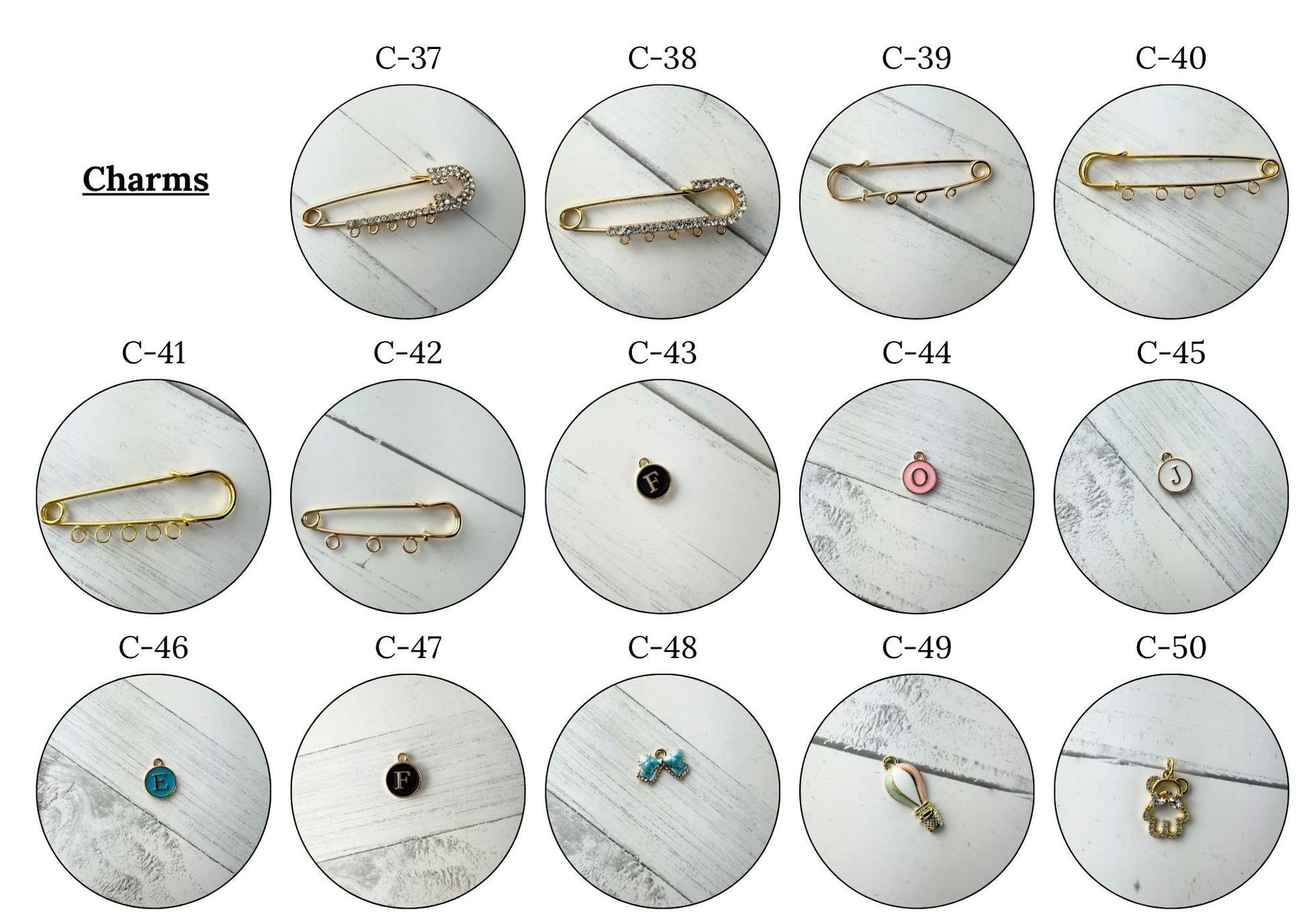 These pins have 5 available spots for charms, please see photos of how the pins work, and make your selections to the right hand side of the page.