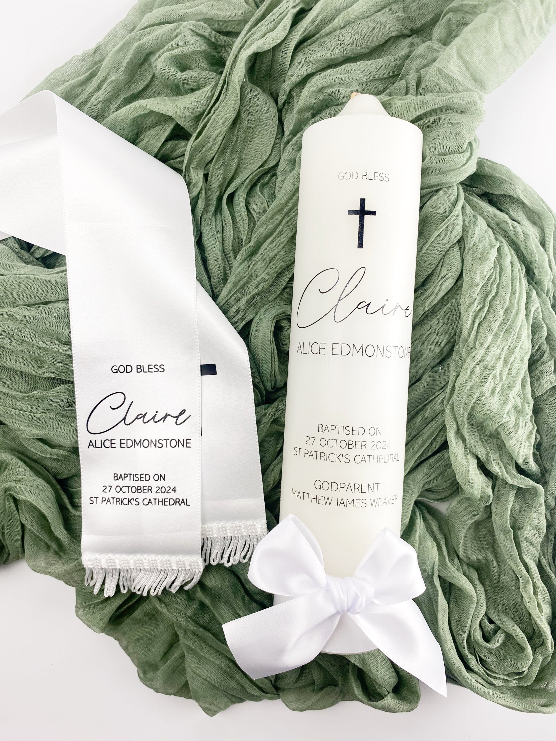 Add a special touch to your special occasions with our personalised 30cm candle and 80cm stole set. Perfect for weddings, baptisms, and more, our set is a unique way to celebrate your special moments. The perfect combination of elegance and personalisation, our set is a must-have for any memorable event.