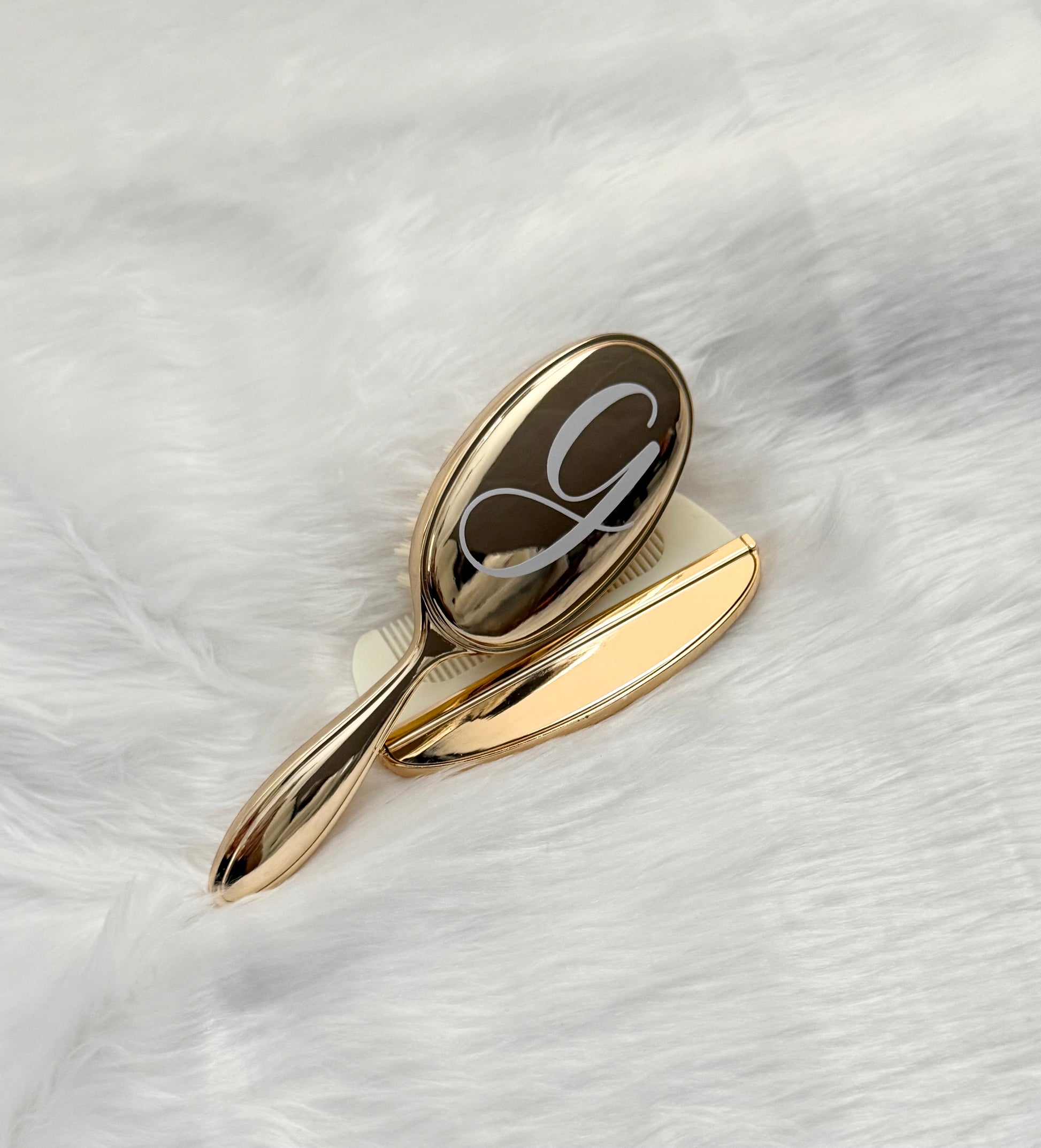 This personalised baby brush and comb set is the perfect addition to any nursery. Made with high-quality gold, this set is not only stylish but also offers gentle grooming for your little one. Keep their hair tangle-free and looking its best with this personalised set.