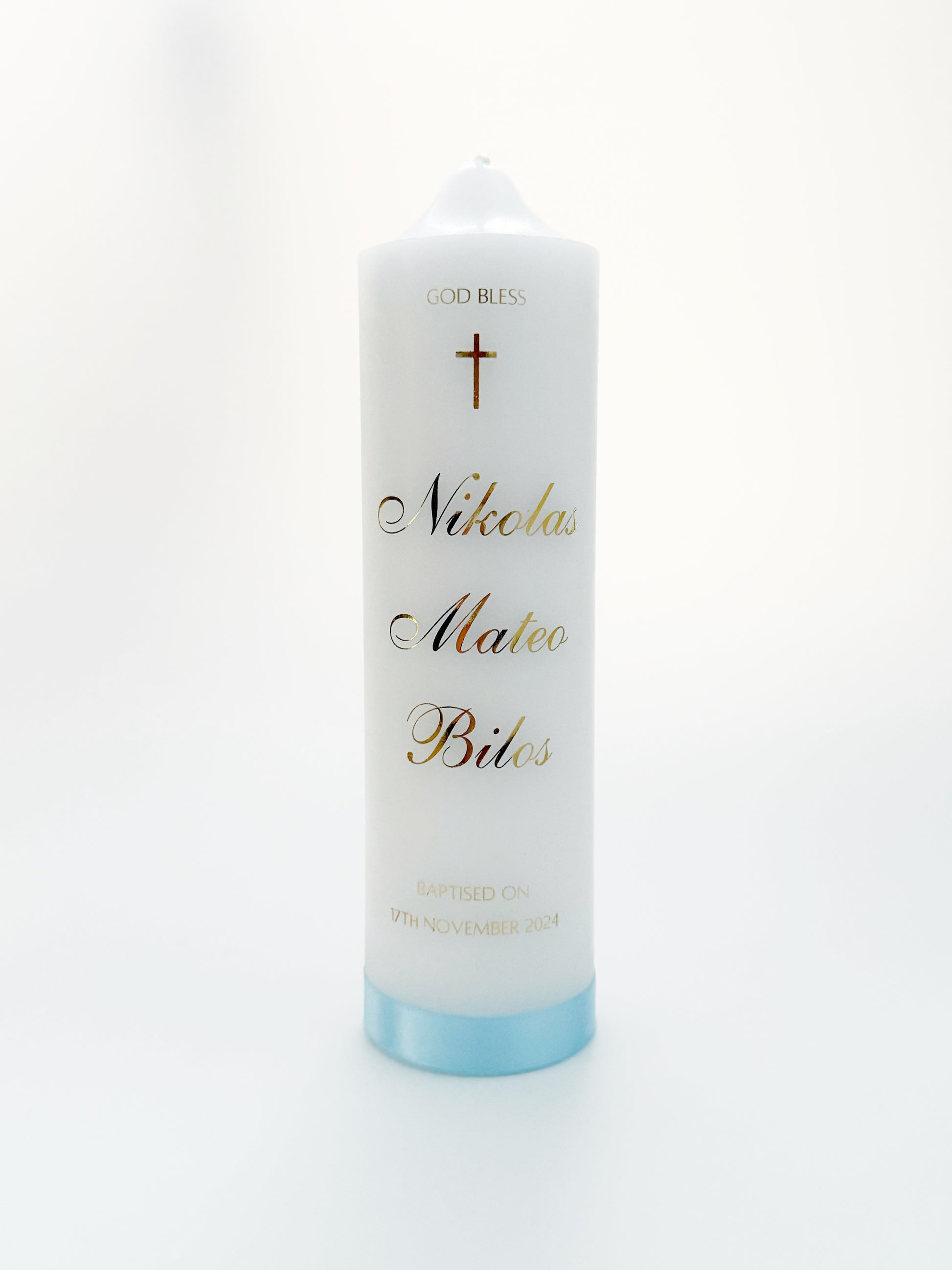 Elevate any special occasion with our Personalised Candles. Perfect for baptisms, christenings, weddings, baby showers, and funerals, these candles add a unique touch to your event. Hand-crafted and customisable, they make for a memorable and meaningful gift. Spread love and light with our amazing candles.