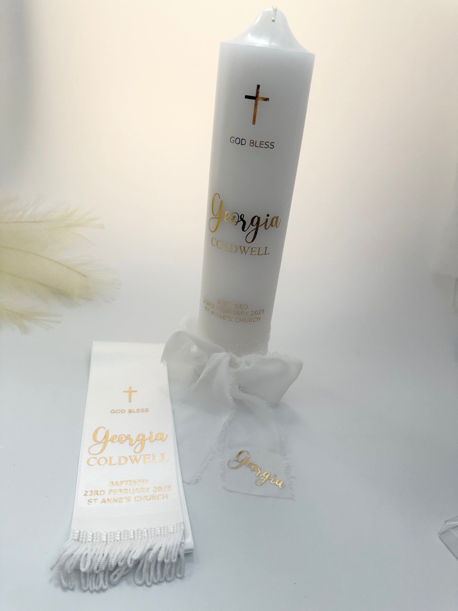 Add a special touch to your special occasions with our personalised 30cm candle and 80cm stole set. Perfect for weddings, baptisms, and more, our set is a unique way to celebrate your special moments. The perfect combination of elegance and personalisation, our set is a must-have for any memorable event.